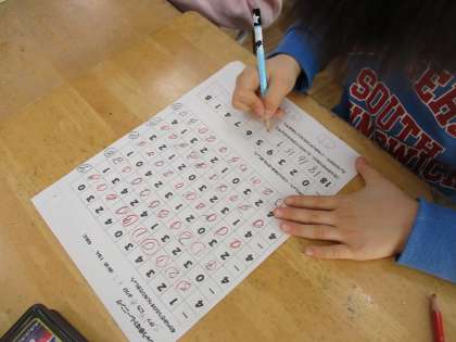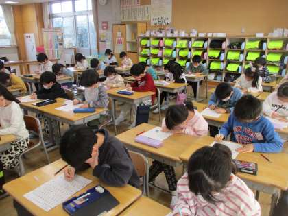 50マス計算に挑戦しています。まずは、1段ずつ取り組み、やり方を覚えていきます。少しずつ計算タイムが上がっていき、自信をつけていっています!!