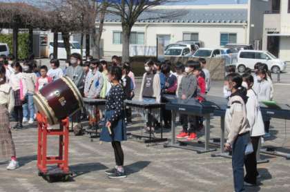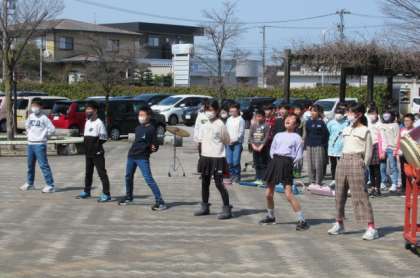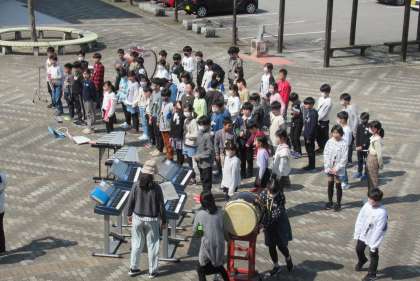 卒業式の日には、見送りの会のとき、光陽応援団をします。中心となるのは5年生。気合いの入ったリハーサル練習です。