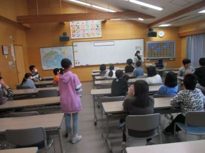 外国語科では、ALTの先生と最後の授業を行いました。子供たちは、5年生で習ったことを振り返りながらゲームをして、とても盛り上がっていました。