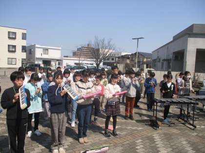 卒業式後の歓送会練習を行いました。場所を確認したり、実際に演奏してみたりと子供たちは少ない練習時間の中で、一生懸命練習していました。真剣に取り組む姿がとても素敵でした。