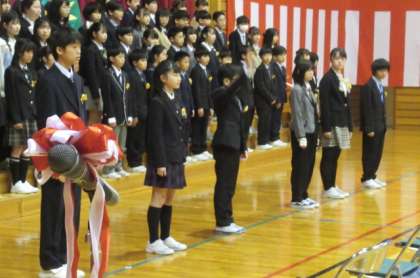 6年生の子供たちは、一人一人が卒業証書をしっかりと受け取り、後半の門出の言葉では、立派に呼びかけを行うことができました。在校生代表の言葉も、インフルエンザの影響を受けて練習ができなかったとは思えない大きな声でした。