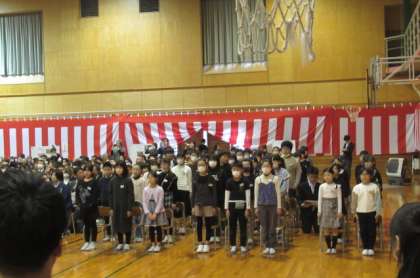 卒業式を行いました。式場には4年生と5年生が参加し、6年生の保護者、教職員とともに、6年生の門出をお祝いしました。