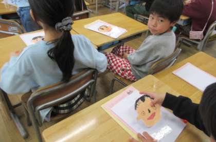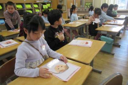 これまでの目当てカード等を綴り。キャリアパスポートに収めます。自分の顔も描いていっしょに。上手に描けています。