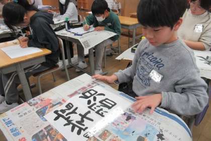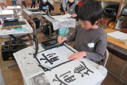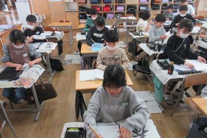 一年間に身に付けた力を活用して、今日は思い思いに自由に文字を書きました。ただし、条件が一つ。このクラスで過ごした2年間を振り返り、心に残った思い出を文字に表すこと、です。