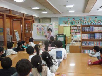 図書室オリエンテーションがありました。本がどのように並んでいるかをしっかり教えていただきました。