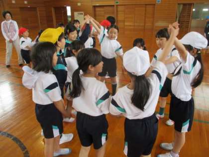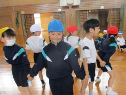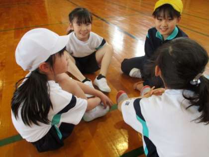体育の時間に、新しい色団で並ぶ練習をしたり、いろいろな人数でグループを作ったりしました。新しい色団のメンバーにわくわくしている子どもたちでした。