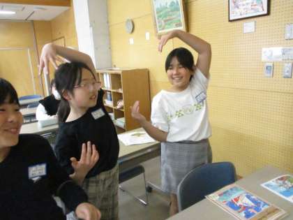 友達の好きなスポーツを訪ね合っています。子供たちは、言葉だけではなくジェスチャーを活用しながら友達に伝えていました!