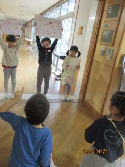 明日、1年生に学校を案内します。そのリハーサルを行いました。1年生に楽しみながら学校のことを知ってもらおうと、張り切っている2年生でした。