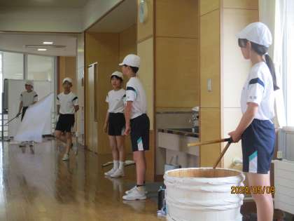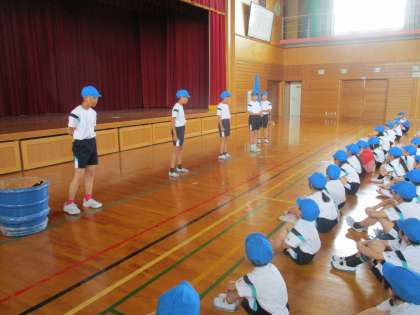 今日は初めての全学年での応援練習でした。みんなで大きな声を出して、協力しながら練習に取り組んでいました。