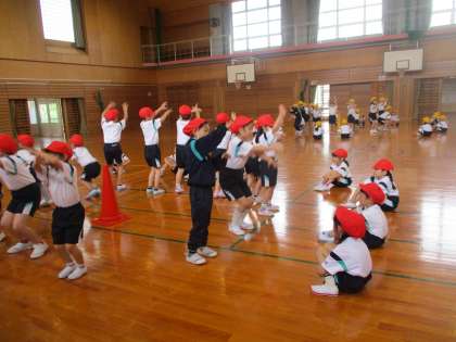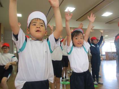 団体競技の玉入れ練習や、応援練習では、お兄さんお姉さんの姿をお手本にして、全力で頑張っています。