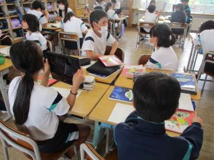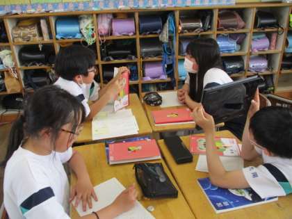 国語の学習の様子です。友達の意外な部分や魅力を引き出すために、質問内容を考えてインタビューしました。