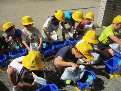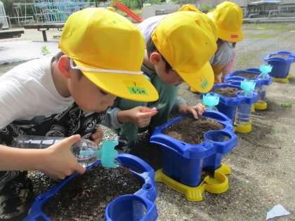 あさがおのたねを植えました。愛情たっぷり育てるよ。大きく育ってね!