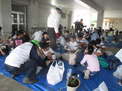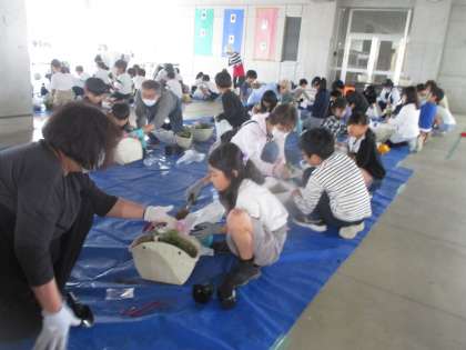 4年生が花植えを行い、遊歩道に並べました。地域の皆様及び保護者の方々、ご協力ありがとうございました。