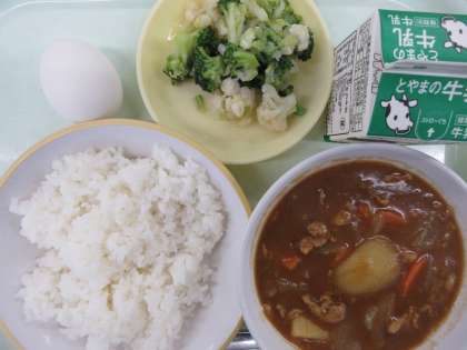 今日の献立は、カレーライス 牛乳 ゆで卵 花野菜サラダ です。