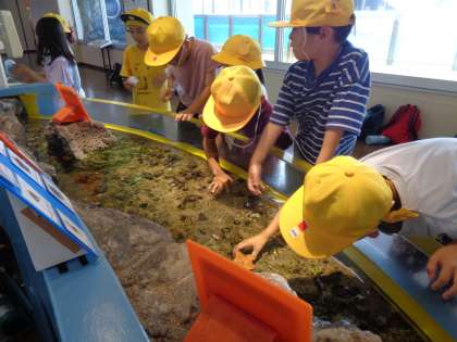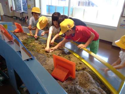 お天気にも恵まれ、元気いっぱいに出発しました。魚津水族館に到着してから、3つのショーをみんなで見て、その後はグループ行動です。友達と協力してクイズに挑戦したり、生き物と触れ合ったりしました。