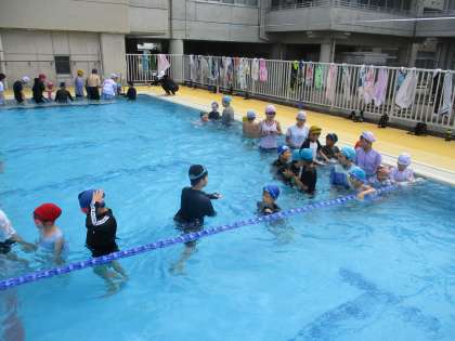 プール内を歩いて回ったり、水中じゃんけんをしたりしました。