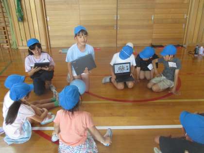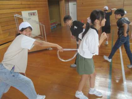 今日は総合的な学習の時間の活動で、1年生と遊びました。相手のことを考えながら楽しく遊ぶ子供たちでした。