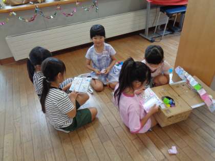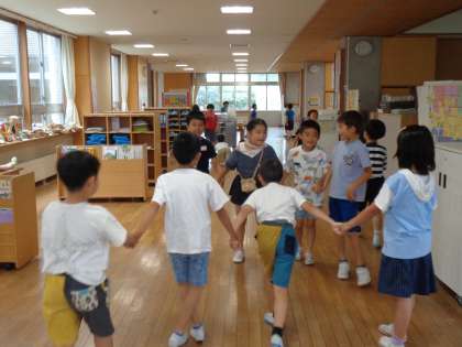 今日ののびのびタイムは雨のため外で遊べませんでしたが、「花いちもんめ」や「なわとび」、「係活動」をして、どの子も楽しく過ごしました。