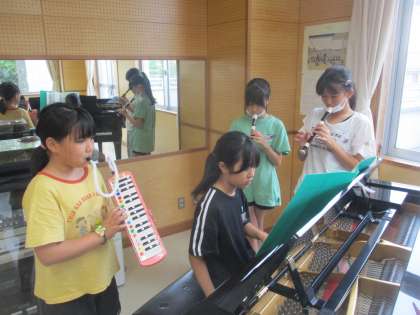 外国語の学習では、週末の出来事について伝え合いました。音楽の学習では、「ラバース・コンチェルト」を合奏しています。
