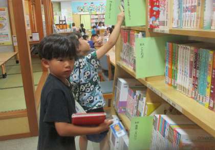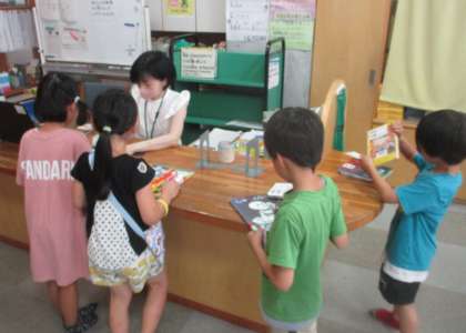 夏休みに読む本を借りに、図書室に行きました。夏休みは、3冊本を借りることができるので、どれにしようか楽しそうに選んでいました。せっかくの長い休みですので、普段読まないような長い本を借りて、じっくり読むのもいいですね。