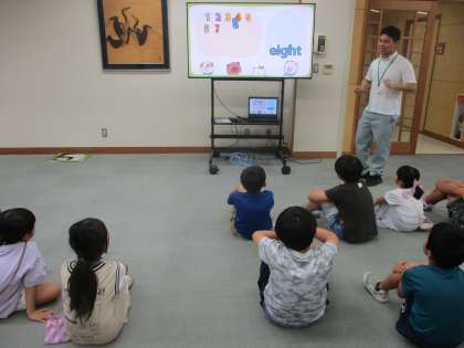 外国語活動の学習をしました。数字や色、名前の言い方などを英語の歌にのせて楽しく練習しました。