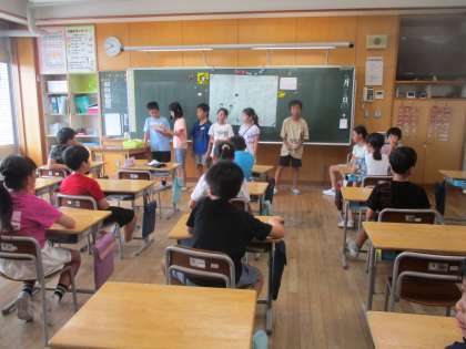 1学期最後のお楽しみ会を開きました。バナナ鬼ごっこや宝探し、なんでもバスケット等、子供たちが考え、準備したゲームで楽しく遊びました。