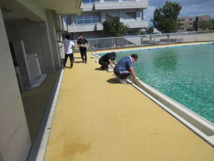 プールの片付け、花壇の手入れ等、教職員一同で協働的に作業に取り組みました。