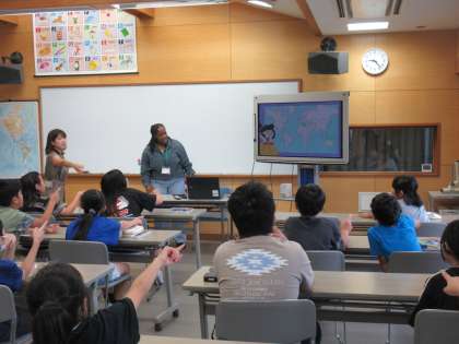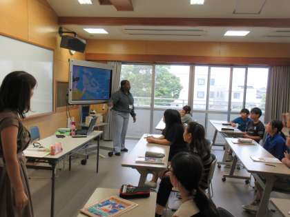 先生の出身地・バハマのことや好きな食べ物のこと等を教えてもらい、心の距離が一気に縮まりました。これからの学習も楽しみですね。