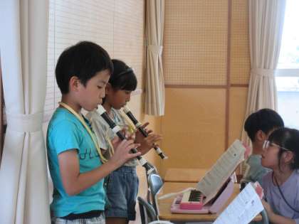 夏休み中にも練習をしたのでしょう。3年生になってから新しくスタートしたとは思えないほど、上手にリコーダー演奏ができていました。2学期もたくさん練習をして、いろいろな曲が演奏できるようになるとよいですね。