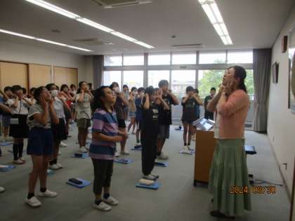 ゲストティーチャーに来ていただき、発声の仕方を教えていただきました!世界に一つしか無いそれぞれの声帯が一つの合唱となるのが楽しみですね!