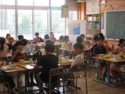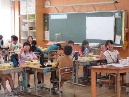 子供たちが楽しみにしている給食。今日もおいしくいただきました。