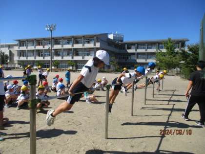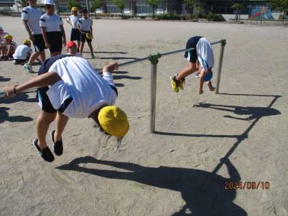 体育の学習で鉄棒をしました。つばめ、布団干し等の技に挑戦!!逆上がりも上手です!