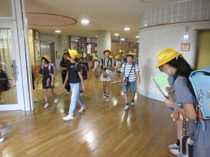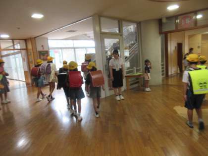 今朝も児童玄関前がとても賑わっていました。教育実習の先生も一緒に挨拶運動をしてくださっています。