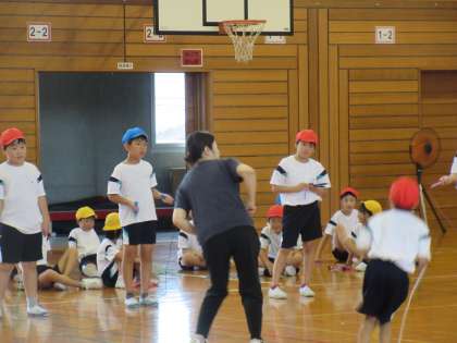 学習発表会に向けて、マット運動や縄跳び運動の技を練習しています。技の出来映えを高めようとみんな一生懸命に取り組んでいました。