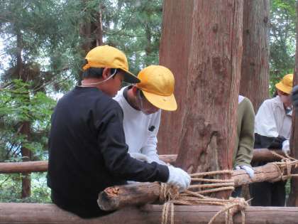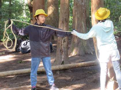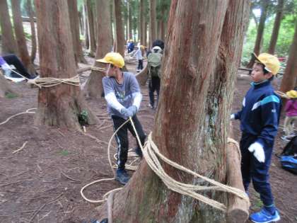 縄や丸太を使った森小屋づくりに挑戦しました。