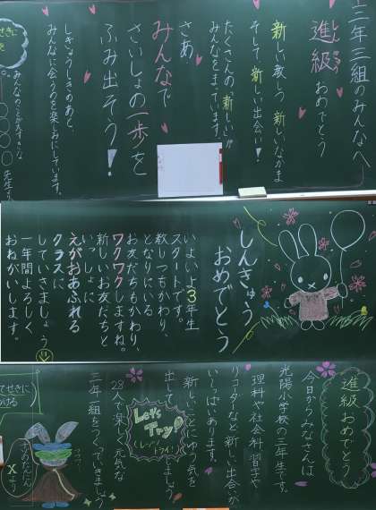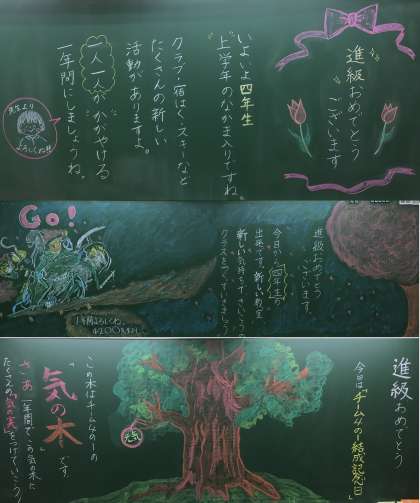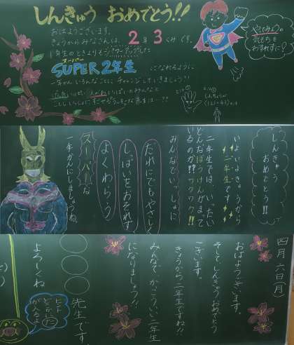 各教室では、黒板に書かれた担任の先生からの熱いメッセージが子供たちを出迎えました。(紙面の都合上、全てをお見せできないのが残念です。)