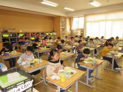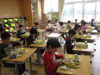 2年生から6年生の給食が今日から始まりました。感染防止に努めながら、美味しく味わって食べたいと思います。