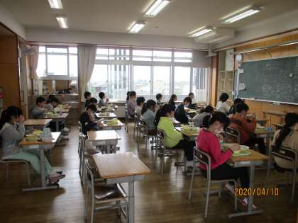 感染症予防のため、給食の時間はずっともぐもぐタイムです。5年生フロアは「しーん」と静まりかえっています。子供達の背中もなんだか寂しそうです。