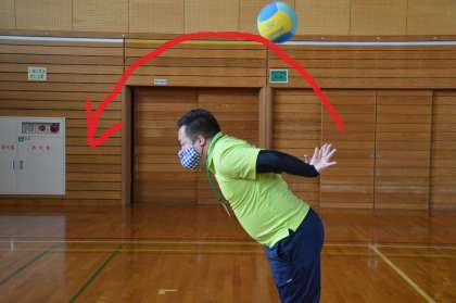 ボールを後ろから投げて、自分の体の前でキャッチします。