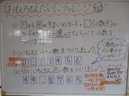 答えは分かったかな? 小数点のカードを置く位置がポイントです。