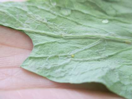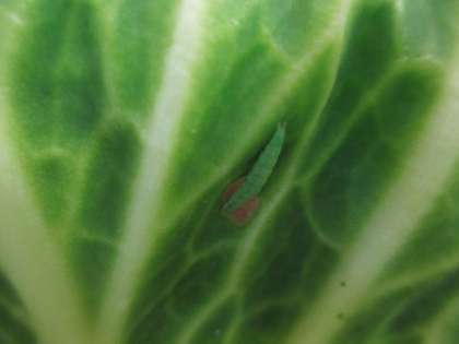 普段からよく口にしているキャベツをよ〜く見てみると、何か小さなものがついていることに気付きました。むむ…これは何だろう?そうです!これはモンシロチョウのタマゴと幼虫です。とってもとっても小さいです。これから植物とともに、モンシロチョウの成長も観察していきましょうね。
