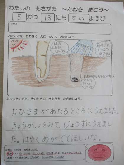 まいたあとは、「たねをまこう」ぷりんとを かきましょう。