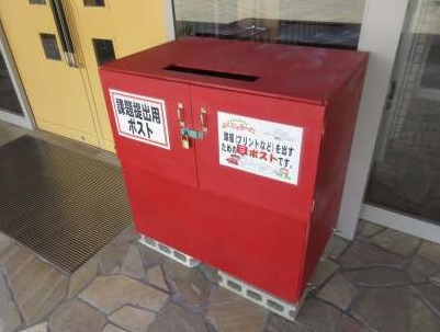 ・提出する課題プリント等をひとまとめにして封筒に入れ、学校の児童玄関前に設置してある「課題提出用ポスト」に入れてください。