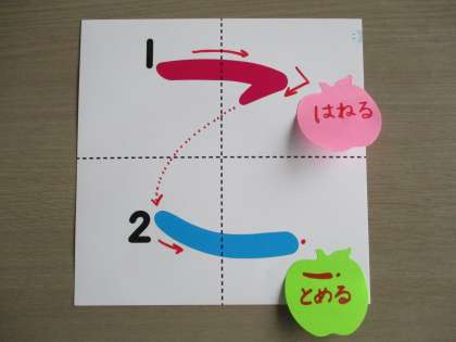 「こ」・・・1かくめと2かくめを つなげるようなきもちでかく。