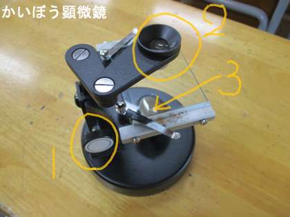 正解は「かいぼう顕微鏡」でした。1は「調節ねじ」、2は「レンズ」、3は「反しゃ鏡」です。「魚のたんじょう」の学習動画の中で、先生が分かりやすく使い方を説明しています。理科の教科書165ページを見ながら、使い方もマスターしましょう!!