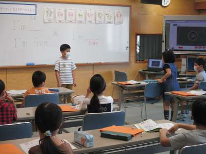 英語で挨拶をしたり、国の名前を言ったりしました。緊張してドキドキしていた子供たちも、"Hello Song”を歌うと、自然に笑顔になりました。次回の学習も楽しみですね!