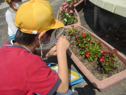春も終わりに近づきましたが、天気がよかったので校庭に出て植物を観察しました。虫めがねを正しく使い、花びらや葉の様子をしっかりと記録することができました。