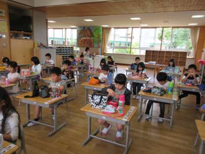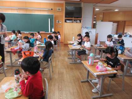 お昼には美味しいお弁当を食べ、エネルギーを充電した子供たち。午後からの勉強も頑張っていました。