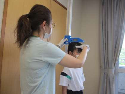 今日は視力、身長、体重の測定がありました。昨年度末よりも3cmも身長が伸びた子供がいるなど、たくましい成長が見られました。これからも、好き嫌いをせずに食べたり元気に運動をしたりして、健康な体をつくりたいと思います。