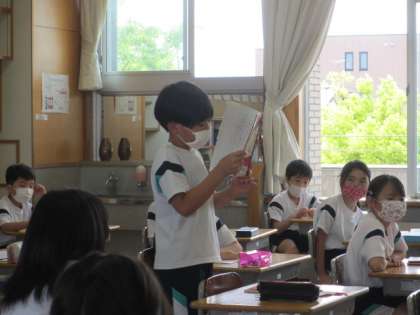 国語の学習で、友達の発表を聞いて質問をする活動をしました。休校の間に書いた発表文を一人一人がしっかりと発表し、それに対して丁寧に質問をすることができました。新しい学級の仲間のことをまた少し、知ることができました。